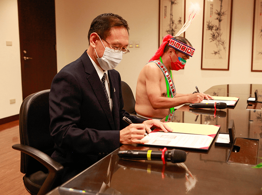 由慈濟大學醫學院謝坤叡副院長與花蓮縣馬太鞍青年團文教發展協會張仁福理事長簽訂合作備忘錄;同時,由公共衛生學系高慧娟副教授與花蓮縣光復鄉原夢工作坊負責人陳美蘭簽署合作備忘錄。