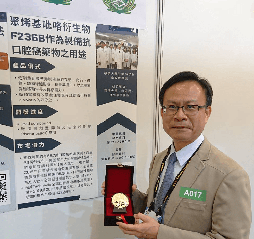 獲得金獎肯定的慈濟大學生命科學系李政偉教授研究團隊「聚烯基吡咯衍生物F632B作為製備抗口腔癌藥物之用途」的發明,為抗癌新藥,此技術在於口腔癌的預防與治療低劑量即顯著抑制癌細胞存活、爬行、遷移、腫瘤球體形成、抗失巢凋亡,以及腫瘤異種移殖生長及轉移能力。口腔癌為我國青壯年男性最常見的癌症之ㄧ,新藥物的開發,將有助於口腔癌患者的治療,已經獲得台灣和美國的專利。