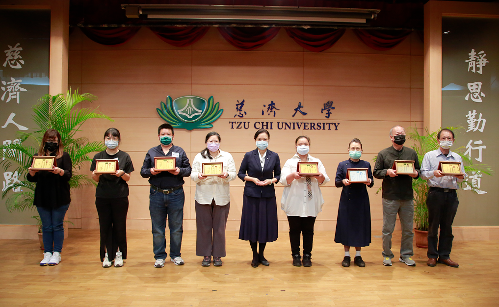 慈濟大學劉怡均校長致詞:「要反思無語良師教我們的生命課程、生命意義,感恩醫師老師及醫師學員教與學,沒有辜負大體老師貢獻。」劉怡均校長頒發感恩紀念牌給每一位家屬,感恩家屬成全圓滿老師的大願。