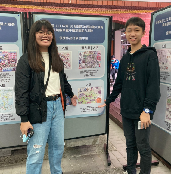 相較於閱讀理解,「環境觀察暨手繪地圖組」著重實務操作面項,本次競賽當中張詠嘉、楊定澄、王薰儀三位同學展現觀察環境及以地圖展現觀察結果的能力。孩子們有如此好成績,是因為有用心又專業的老師在旁指導,慈大附中地理科陳枋諴老師、陳亞雲老師、郭怡君老師、陳俊年老師日夜陪伴孩子準備比賽,無論是彙整題庫、陪伴寫題、分析解題,抑或是一遍又一遍琢磨地圖繪製的過程,感恩師長們點滴付出的辛勞,如今能帶著孩子們站上舞台發光發熱。