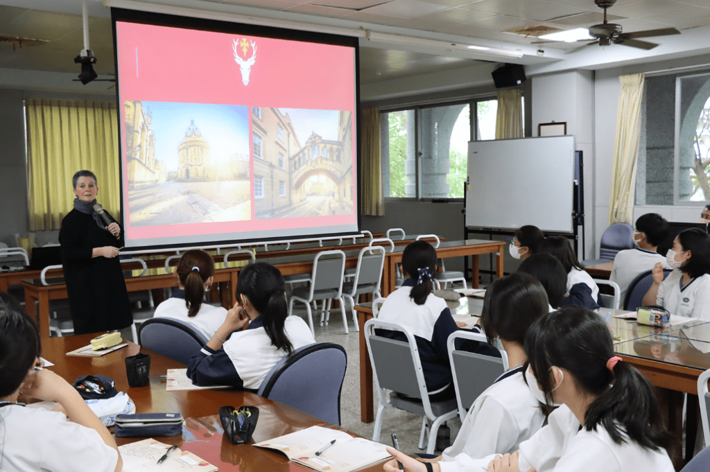 高一知足班林宏燁同學表示,一直都知道英國有所牛津大學,但沒有真正去認識,聽了介紹後,才知道原來整個牛津市都是牛津大學的校園,而且牛津有38個學院,這規模實在難以想像,也很吸引人。高一大愛班劉宸銘則感恩學校的安排,讓同學們有很多與國際接軌的機會,自己未來希望能到英國或美國讀大學,聽了牛津大學代表的說明後,更清楚自己要怎麼做準備,尤其是英語能力的加強。