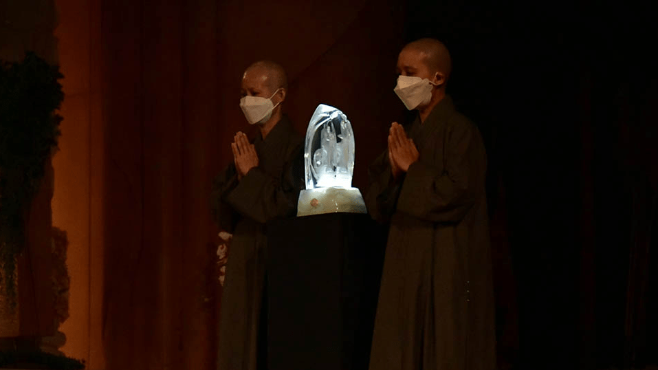 在疫情逐漸解封之際,同學以手語跟肢體演繹無量義經序曲與藥師如來十二大願終曲,透過肢體展現,感恩醫護人員、師長們,期盼能為紛擾的世間帶來一股安定的力量。