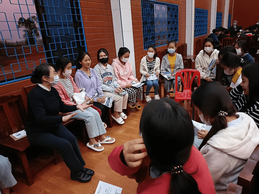 茶房村光復高中、熱水塘新村一新中學,目前已有校友至慈濟就讀,師長們也透過分享校友的學習點滴和生活小故事,成功地與學生拉近距離,讓他們更清楚來台灣就學的優勢。也有同學擔心出國無法適應生活、學業壓力大等等問題。何缊琪院長說明系上老師很有熱忱、另外有小老師課輔制度、學長姊也會互相共讀。而已在台求學的學長姊們平日也常聚會,解思鄉之情外也給予最適切的支持。