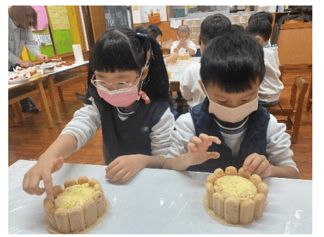 烘焙老師會為不同年紀學生準備適合他們的手作課程,孩子藉由手作認識了許多材料及烘培過程,更可增進孩子的小肌肉發長及培養細心及創造力,最後還將美味甜點帶回家分享,是孩子們很喜愛的課程喔!藝術老師也準備豐富的手做課程,讓孩子藉由黏土捏塑完成應景的兔年搖搖蛋,充實孩子生活中的美感體驗,更促進小肌肉發展。