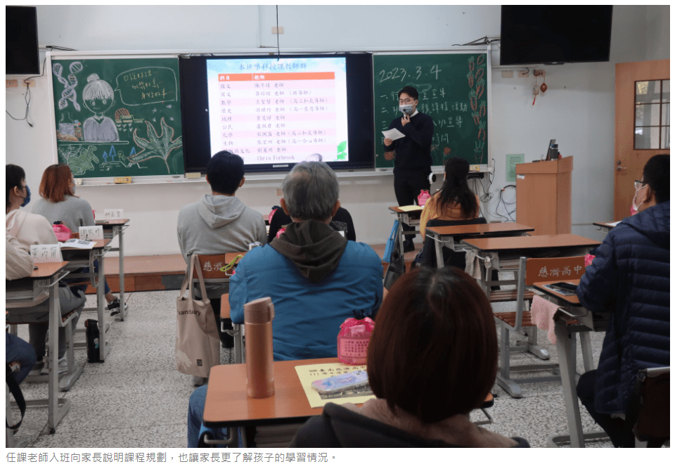 高一知足的家長表示:「孩子是直升生,已經參與過學校多次的親師日活動,但每一次參與親師座談,都可以感受到老師的積極度與教育專業呈現在簡報及教室空間的擺設上。導師平日運用班級群組提醒家長學校相關活動,讓我們和孩子更有話題可聊,私下互動更能感受老師的教育愛;班級小黑板上,學生豐富的塗鴉,更顯現老師良好的班級經營,讓孩子在這樣的環境中學習,也讓我們更放心!」此外,也有高二家長反映,透過晤談和各科老師分享孩子學習和私下人際關係,不僅更明瞭師長的苦心,也知道如何和老師合作,一起幫助孩子成長。