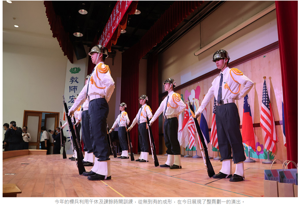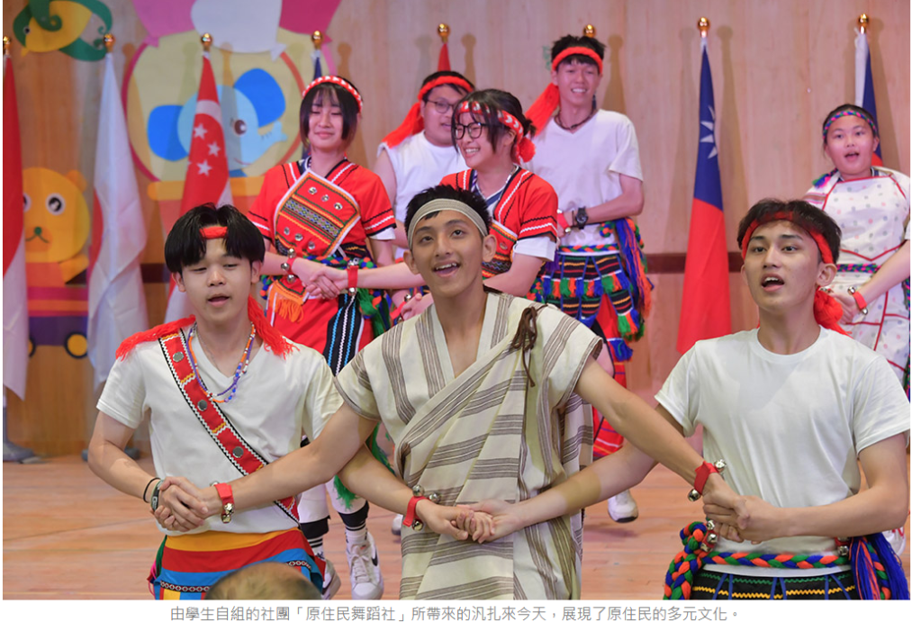 緊接在頒獎之後,是一系列表演,首先上場的是充滿朝氣的幼兒園,稚嫩童音與舞姿,讓現場學長姊與家長們不禁嘴角上揚,心裏跟著節拍律動,十足「無敵小可愛」;高一「武林高手」,身體力行,打出一套有力拳法,而音樂從急促到和緩,以太極元素收尾,融合高中的青春與沉穩氣質;「原舞社」身著族服華麗登場,高亢高聲展現對於文化的認同,即使面對後段音樂播放失誤,仍臨危不亂,清唱大展實力,讓全場觀眾拍手叫好;國術隊與國小部「大地和風」壓軸,一念心為世界虔誠祈願。