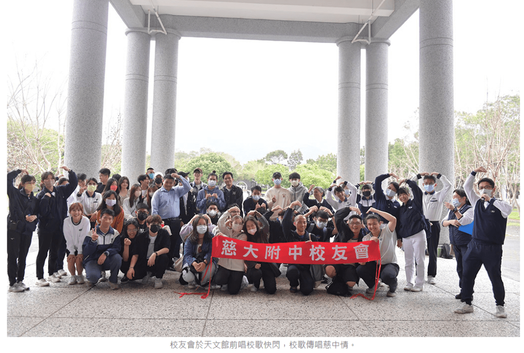 除了在校生精彩演出外,在校園各角落更可見許多歷屆校友身影。慈中校友會今年籌備許多活動,如臉書按讚、校友生涯地圖、校友大集會等,邀請校友一起為慈中慶生,中午更於天文館前集合,來個「唱校歌」快閃,留下歷史的紀錄,大家唱完校歌後隨即到各辦公室與師長們敘舊,在歡笑中劃下句點。