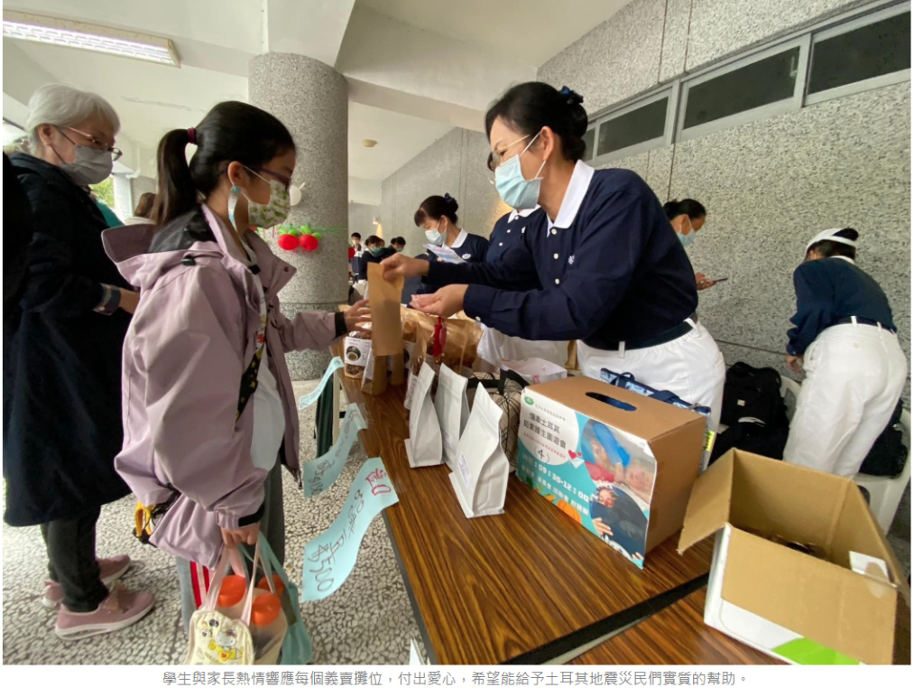 而今日校慶運動會最大亮點就是「情牽土耳其,茹素護生園遊會」,既受之於社會,也需培育回饋之心,感恩人文室、家長會、慈懿會與妙膳廳的護持,今年募心募愛園遊會共設立23個攤位,熱食冷飲、餅乾茶點、文青小物應有盡有,還有來自精舍師父的愛心熟食,親師生共襄盛舉,把現場擠得水洩不通,而義賣所得全數捐助土耳其敘利亞地震災害,落實感恩、尊重、愛的慈濟精神。
