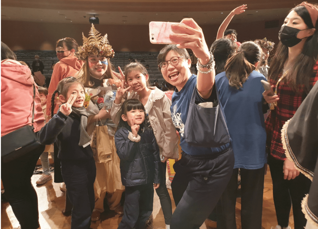 今年兒童劇是由109級兒童發展與家庭教育學系的學生編排,109級導師張麗芬老師表示,同學們從去年開始籌備兒童劇,寒假排演期間還遇到學生確診,因此今年採取A、B兩組輪流演出,每個人不只是要當演員,也要成為幕後協助演出的工作人員,大家從過程中體會到不同角色的工作,更能了解一齣兒童劇的圓滿需要大家的同心協力,與今年的主題精神一致。