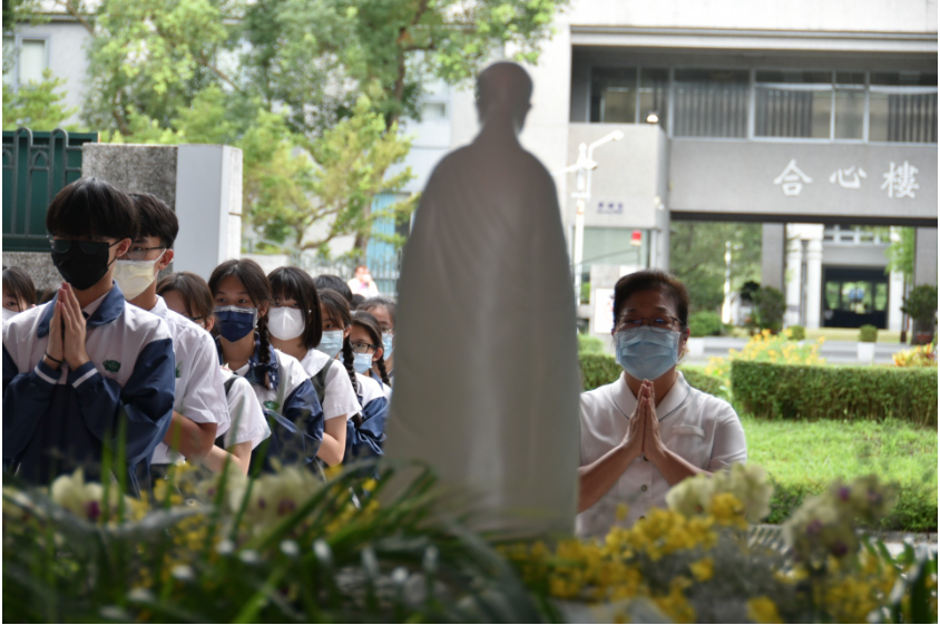 五月十八日慈大附中國小部、幼兒園及即將面臨人生重要會考的國三學生共一千一百零七人齊聚在親師樓穿堂參與慈濟五十七周年浴佛典禮,「佛誕節、母親節、慈濟日」三節合一,感念佛恩、親恩、眾生恩,啟發人人心中愛的能量,在精舍師父引領下人人心中充滿法喜,期望透過浴佛傳遞祝福。