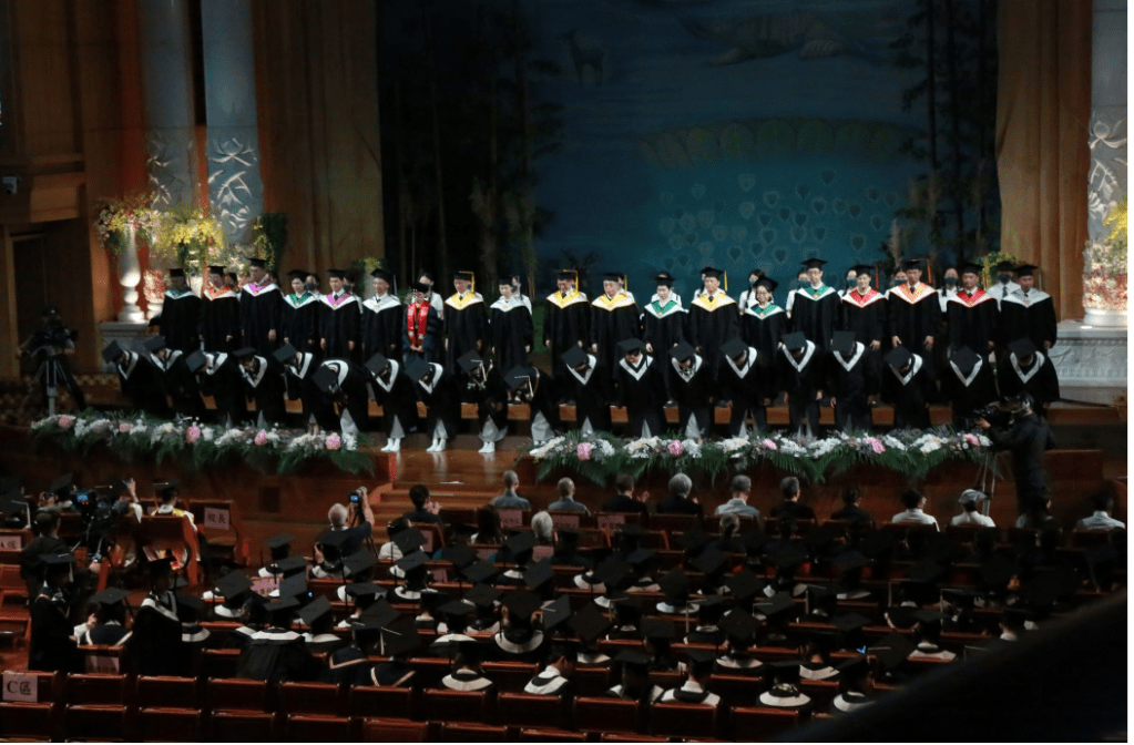 畢業生親自上台,逐一接受師長撥穗,再授予畢業證書,祝福展翅高飛,迎向人生下個階段。同時,畢業生不忘向師長、家長九十度鞠躬,感恩眾人的用心栽培。