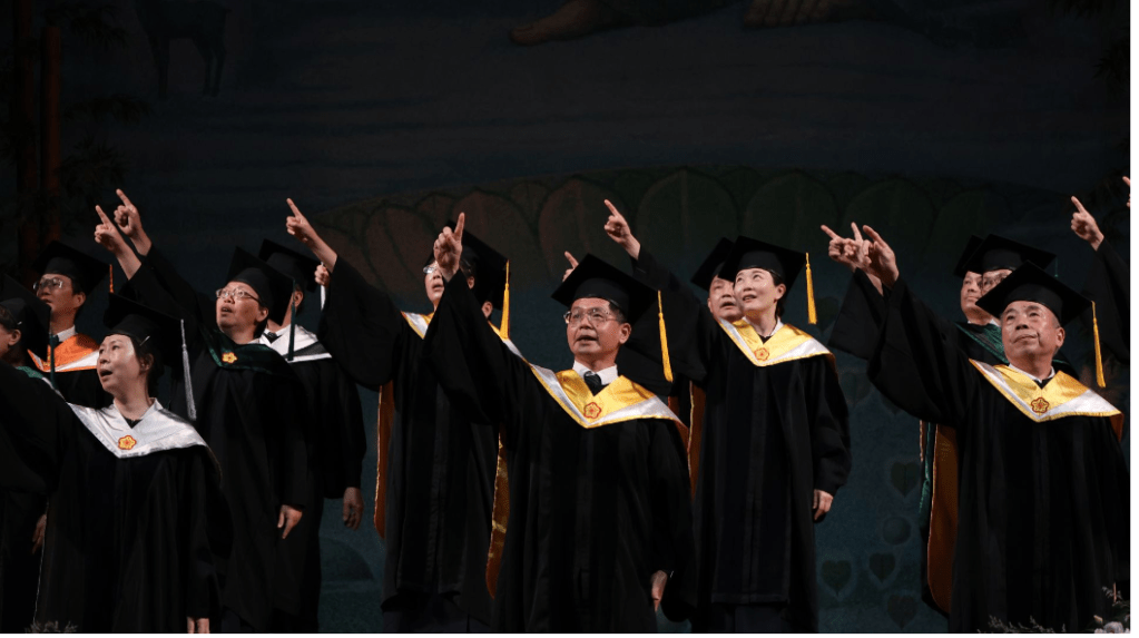 靜思精舍德劭法師表示,恭喜應屆畢業生學有所成,而慈濟的大門,也永遠為大家敞開,提醒畢業生時時懷抱感恩、尊重、愛,進入職場後,才能人見人愛。