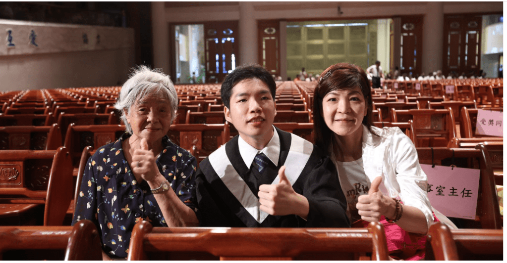 出自單親家庭的洪騰詠坦言,家人永遠支持我、鼓勵我,給我勇氣和信心,面對一次次的考驗和挑戰。所以,在畢業典禮,當眾大聲說出「媽媽,你最棒!我愛你!」媽媽洪榆楨表示,「騰詠是老天爺送給我最棒的禮物,我好驕傲、好光榮!」也不忘提醒騰詠,要懂得感恩、不忘初心,把所學回饋貢獻社會。尤其,「慈濟給我們太多太多了」,不論是生活關懷或經濟補助,都無時無刻的陪伴,就像雪中送炭,這份溫情難以忘懷。