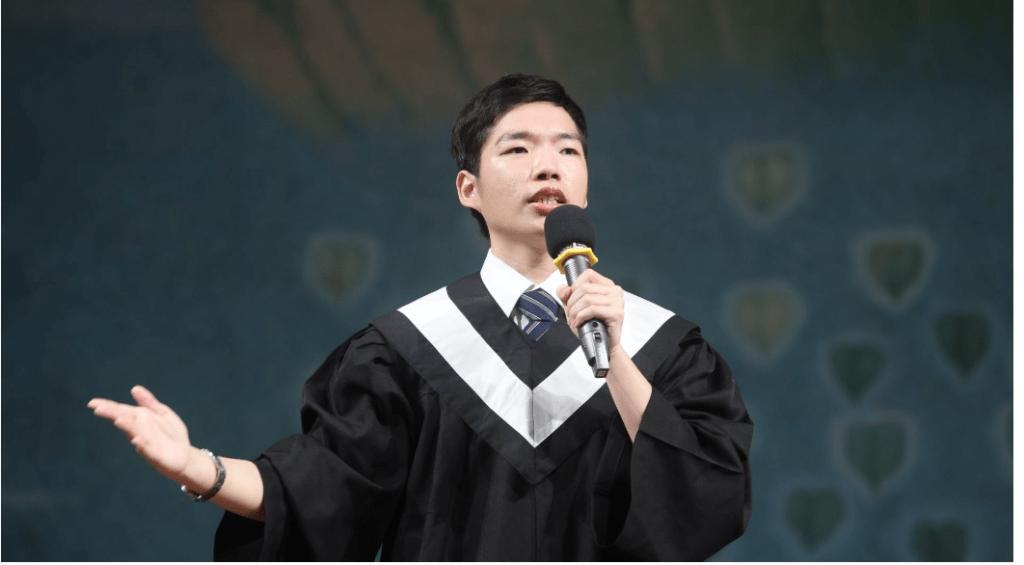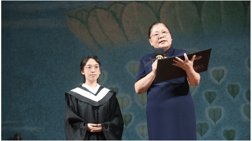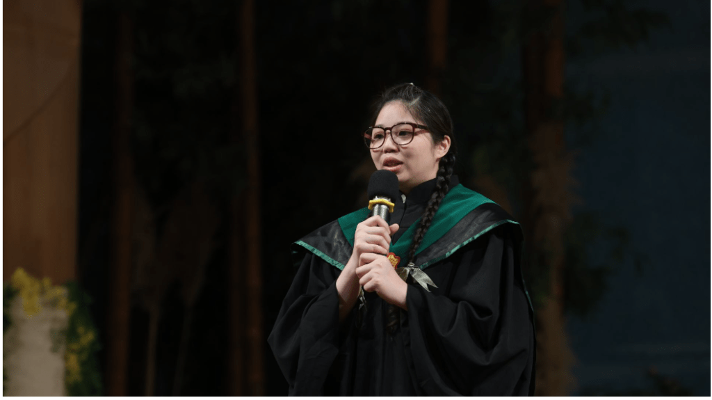 畢業生家長代表吳兆文表示,感謝學校栽培,讓女兒學會獨立思考,懂得設身處地,為他人著想。護理科應屆畢業生吳妤薰表示,參與親善大使五年,學會了勇敢承擔錯誤。