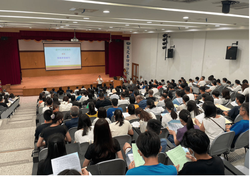 感謝家長與學生的肯定,慈中今年的高一新生報到率達99%,演藝廳座無虛席,李校長再次感恩家長的肯定,並說明選擇就是改變的開始,請家長放心將孩子交給慈中。