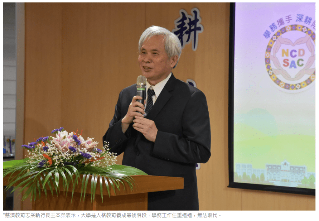 慈濟科技大學校長羅文瑞表示,面對越來越多外籍生的國際化校園,不論是文化背景、價值觀都多元且懸殊,可以想見學務工作辛苦倍增。教育部常務次長林騰蛟表示,感謝第一線的學務同仁承擔,不但得確保學生在校安全,輔導課業學習,還得尋找相關資源協助,可謂任務艱巨。慈濟教育志業執行長王本榮表示,大學就是人格教育養成的最後一個階段,由此可見,學務工作任重道遠,無法取代。