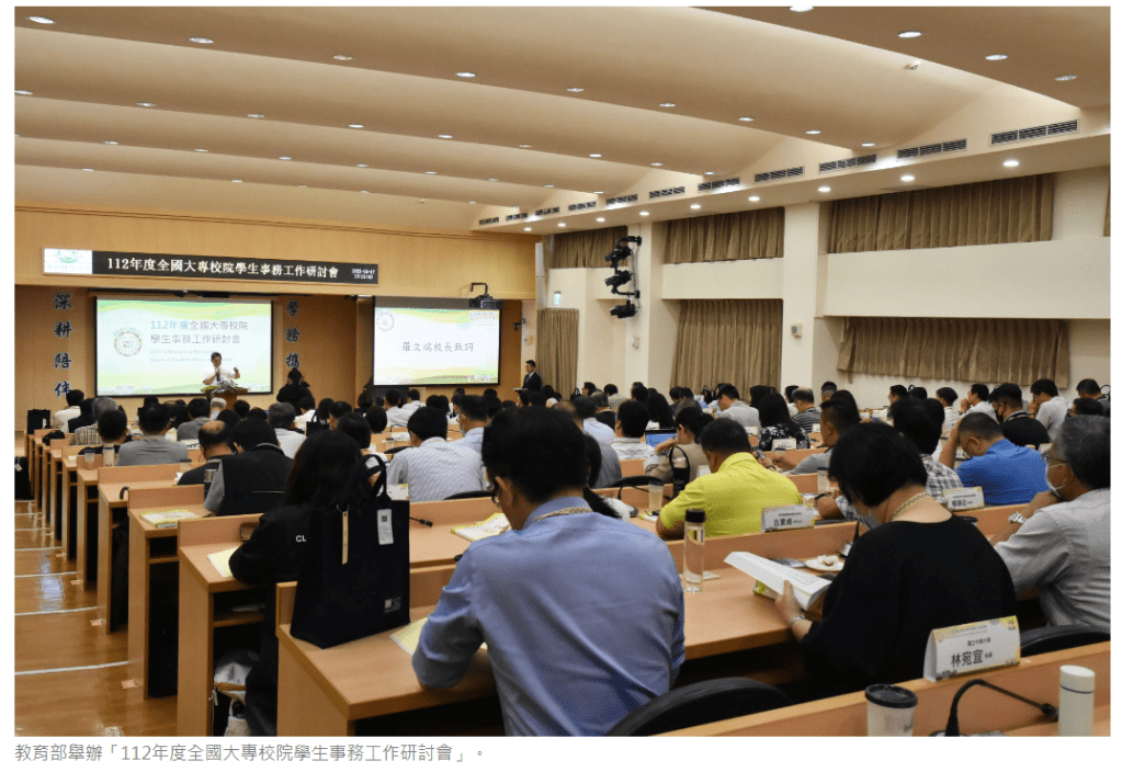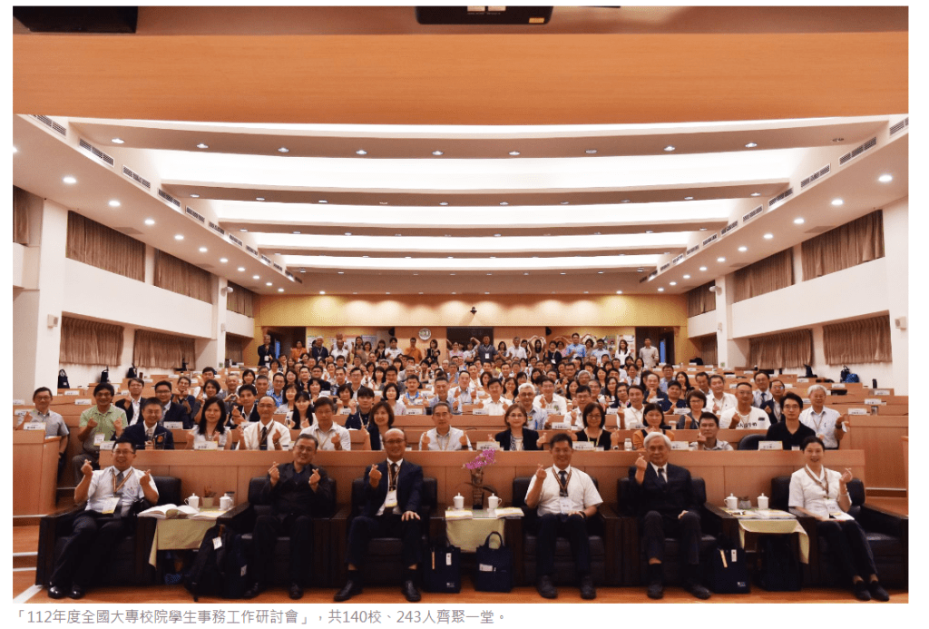 八月十七日至十八日,教育部舉辦「112年度全國大專校院學生事務工作研討會」,共140校、243人(含學務長、學務主任、工作人員等)齊聚一堂,教育部常務次長林騰蛟親自頒發感謝牌,肯定各校學務長、主任的貢獻。