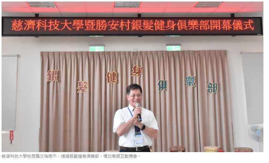 衛生福利部國民健康署社區健康組長李嘉慧表示,預估在全台設置288處「銀髮健身俱樂部」,由專業人員提供運動指導,鼓勵長輩就近運動,預防及延緩失能。慈濟科技大學校長羅文瑞表示,透過銀髮健身俱樂部,增加青銀互動機會,讓學生多接觸長輩,更在閒聊互動之餘,自然而然的把運動融入日常生活。