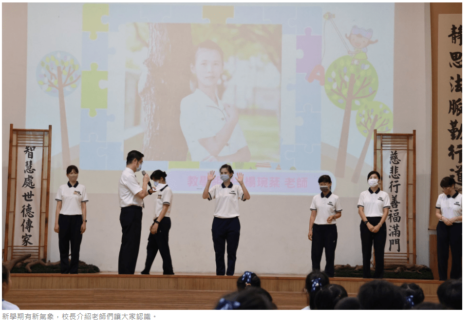 新學期有新氣象,校長介紹新的行政老師和新進的老師,其中黃昱瑜老師之前曾在臺南慈小任教,她表示能再度回到熟悉的校園很歡喜,校長也藉開學典禮分享中學部暑期醫療體驗營及印尼校際交流心得,讓國小部學生也能知道中學部的活動。