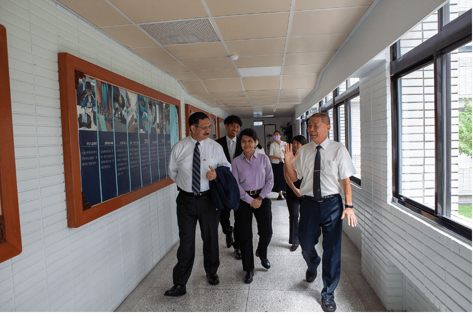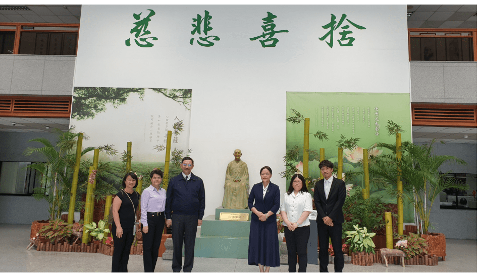 劉校長贈送證嚴法師靜思語給巴迪亞大使,並向大家介紹慈濟教育理念,印順導師 給予上人一句「為佛教,為眾生」開啟了慈濟四大志業,1989年成立了慈濟護專,辨學的過程中發現原住民因為家境的問題就學困難,在1996年設立了原住民護理專班,並於1994年成立慈濟醫學院,而2000年慈濟大學附屬中小學成立,自此慈濟教育完全化,慈濟學校校訓「慈悲喜捨」,培育具有人文關懷與專業的人才。