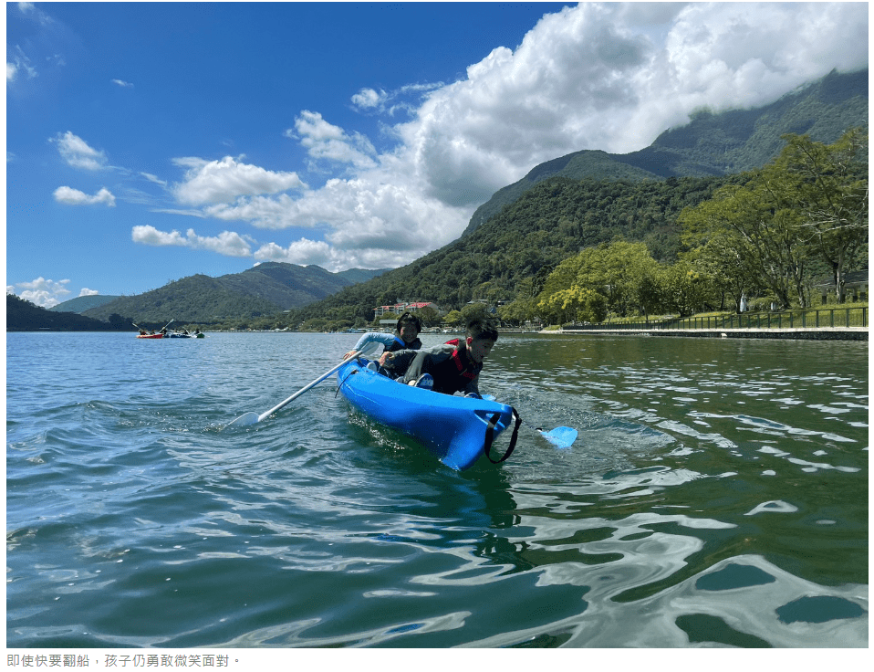 是什麼樣的勇氣,讓孩子即使落水,仍不畏懼?走出戶外,天地就是大課堂,慈大附小五年級將教室延伸到大自然,透過體育、健康、綜合等科跨領域課程合作,為孩子搭起學習鷹架,超過十年與光合作用戶外探索學校合作,藉由「獨木舟」探索活動,凝聚班級向心力,創造學生團隊合作的真實體驗外,更重要的是激發孩子課堂外的學習潛能,培養其面對問題、解決問題和勇於挑戰的勇氣。