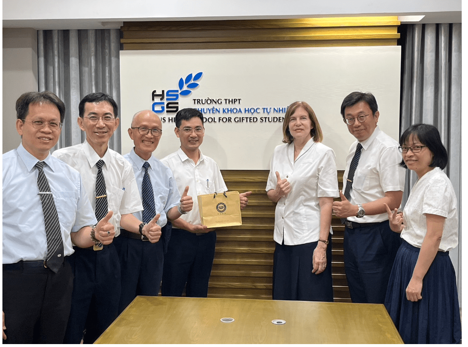 開始了第一天的參訪行程,第一站是自然科學大學附屬高中是當地的一所資優高中,這是此行拜訪的第一所高中,承蒙學校副校長NGUYEN CONG TOAN, Ph.D. (同時也是大學的物理系主任)的熱情接待。