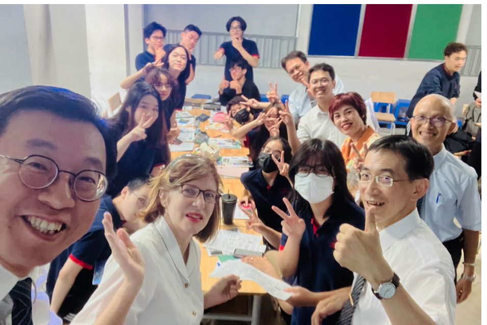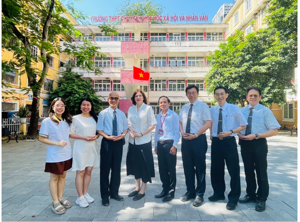 緊接著第二站拜訪了河內國家大學的社會人文大學附屬高中,這所高中更是當地的高質量的資優高中,感恩校長Assoc.Prof.Dr.NGUYEN QUANG LIEU與秘書Ms.MAI MAI的悉心介紹與接待,在參訪的同時,校長提到今天是河內國家大學社會人文大學附屬高中重要的日子~學校校慶,也是高中部成立四週年慶,大家都為這份的殊勝的因緣感到不可思議。
