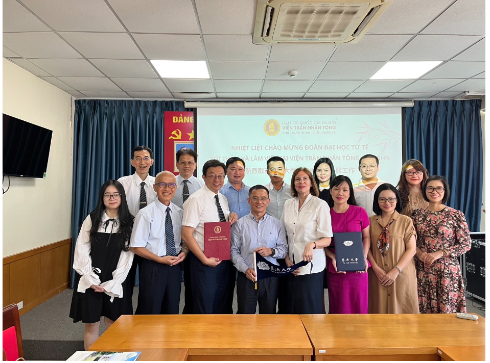 慈濟大學已經受邀前來陳仁宗學院拜訪第三次,兩校在這幾次的積極交流之後有了合作的共識,希望在促進臺越佛教的傳播與拓展、佛教經典與文化、佛學思想的探索與研究等方向,進行更積極的跨國合作。此次慈大國際長戴愛蓮博士代表校長前來簽署合約,在獲悉戴國際長的研究專業以及近年從事的越南佛教研究之後,學院邀請戴國際長前來進行學術研究交流並針對相關主題進行演講。