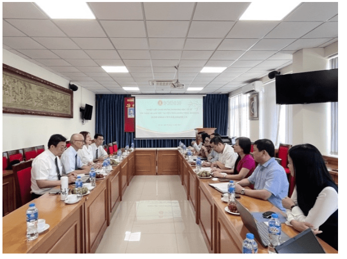 本日最重要的行程是與越南國家級的佛學研究的最高指導機構陳仁宗學院(河內國家大學所轄佛學研究之獨立學院)簽署MOU,非常感恩院長Assoc.Prof.PhD.NGUTEN TIEN VINH率領學校的主管楊氏秋荷副院長等12位同仁熱烈歡迎慈大代表團的訪問。