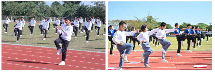 緊接在進場之後,是一系列團體表演,首先上場的是慈中運動場上特有的風景「大地和風」,校長帶領全校千人一條心,結合武術動作,展現慈中的力量,在達到健身、強身、養生的效果之外,也祝願社會祥和、天下無災無難;充滿朝氣的幼兒園緊接在後,稚嫩童音與舞姿,是初生之犢不畏虎的「勇氣大爆發」;高一「武林高手」,結合了空手道、跆拳道、拳擊及武術等簡易動作技巧,整齊一致的動作、嘹亮的聲音,加上青春無敵的笑容,展現高中同學的自信與活力;壓軸登場的是由幼兒園、小學、國中、高中,及畢業校友一同進行的「行願」國術表演,跨年級合作,意味傳承的精神,如歌詞所呈現的「守之不動,億百千劫」,期許能堅持初衷,武魂永在。