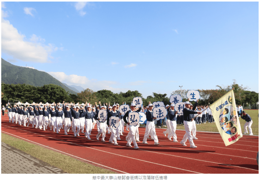 走過疫情時代,歷經風雨攪局,今年運動會是慈中睽違多年再度開放校園,全校師生秉持證嚴上人期許,以合心、和氣、互愛、協力為信念,齊心共聚善念,增福修慧,活動當天天清氣朗、晴空萬里,在全新400公尺PU跑道上,選手們盡情奔馳,家長們熱血歡騰,在在皆將成就第二十四屆校慶運動會熱鬧非凡。