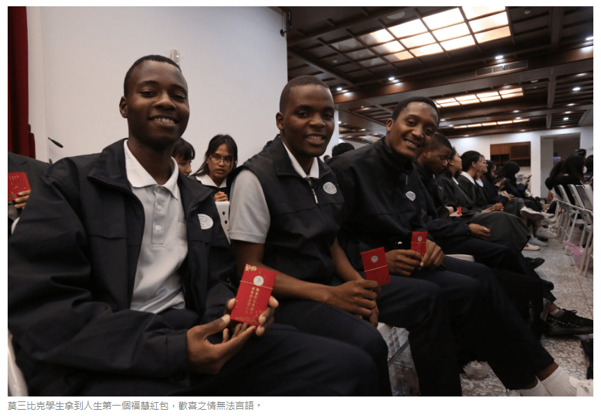 對新生來說,第一次拿到福慧紅包,歡喜之情無法言語。尤其,隨機排序、不重複的靜思語,更讓學生覺得很有感。來自莫三比克的經營管理系一年級學生Fernando Graca Cossa表示,在非洲,白色象徵愛與和平,沒想到,在亞洲卻是紅色,所以,拿到人生第一個紅包,覺得很神奇!