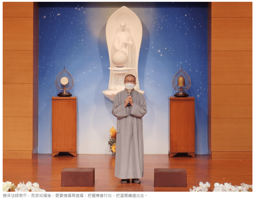 德深法師表示,對照俄烏戰爭、以巴衝突,災民流離失所、無家可歸的痛苦,能生活在平安的台灣,真的要感恩。也因為災民,讓我們得以見苦知福,更要惜福再造福,把握機會付出,把溫暖傳遞出去。