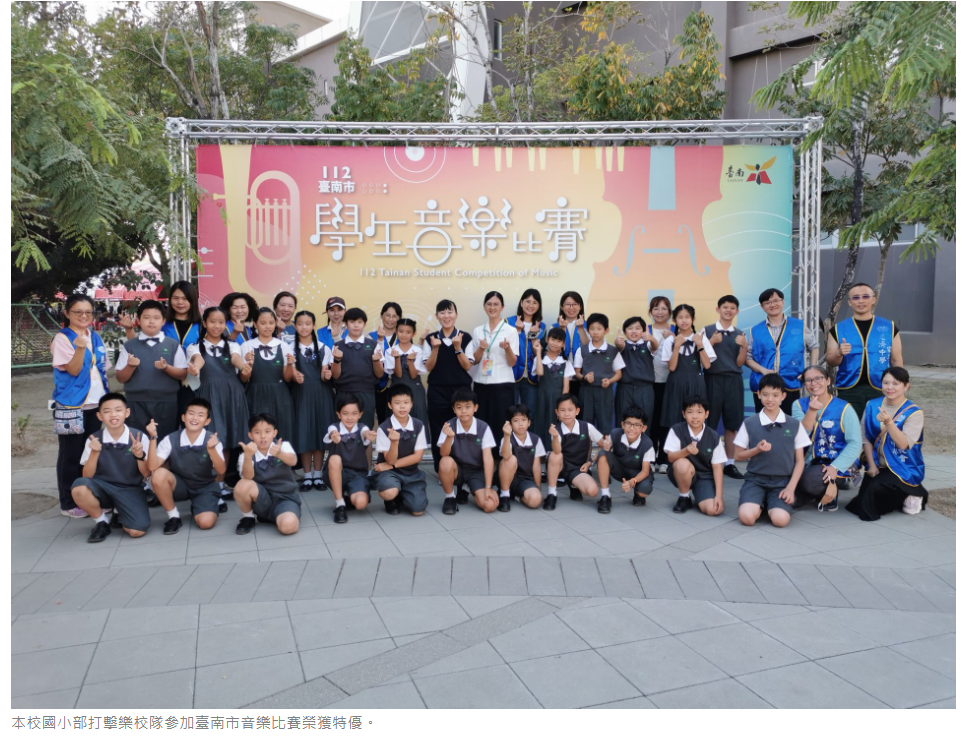 打擊樂團隊在打擊樂組以及合唱團在師生鄉土歌謠比賽閩南語組雙雙榮獲特優,並代表臺南市參加全國比賽。此外,合唱團參加同聲合唱以及舞蹈團隊參加學生舞蹈比賽現代舞組亦榮獲優等佳績,表現傑出,令人激賞。這些比賽優異成績不僅展現了學生們的多元潛能,在品格教育紮根下展現出眾的才華和實力,令人讚嘆不已。透過比賽,學生們學習到了團隊合作、努力不懈、勇於挑戰的精神,這些都是慈濟教育的核心價值。