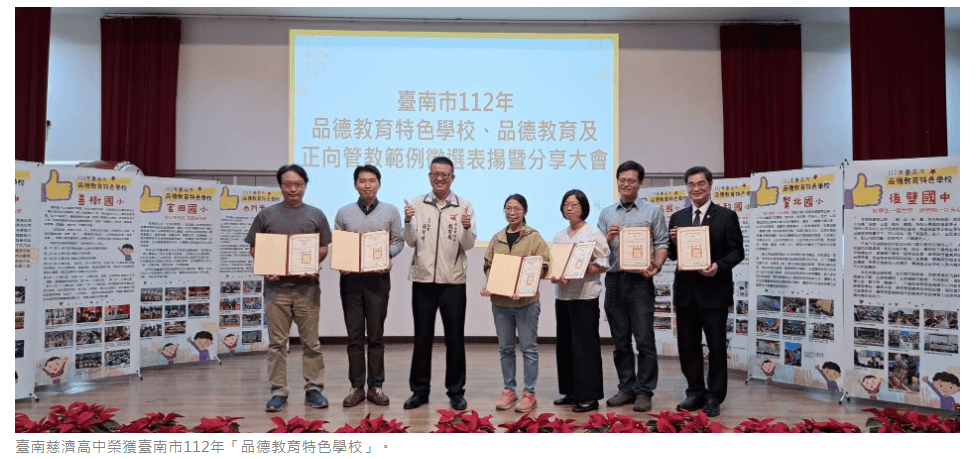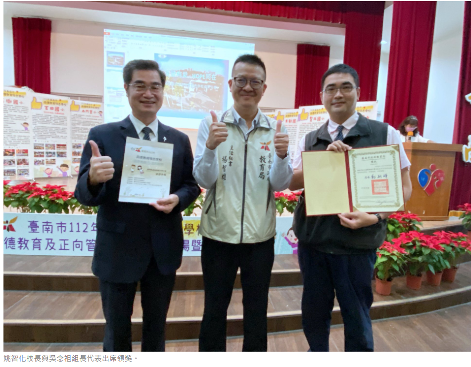 12月5日由姚智化校長代表出席臺南市112年品德教育特色學校、品德教育及正向管教教案徵選表揚暨分享大會獲頒臺南市112年「品德教育特色學校」。