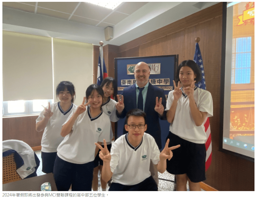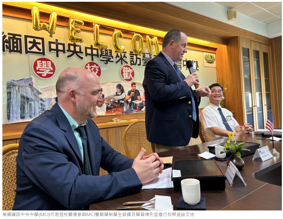 美國緬因中央中學(MCI)董事會主席Mr. Mike Dow、教務主任Mr. Scott Giallombardo,聯袂台灣代表石英雀執行長和郭育伶總經理,於4月18日蒞臨臺南慈中,關懷參與MCI雙聯學制學生修課及學習情形、校園巡禮,並進行校際座談交流。