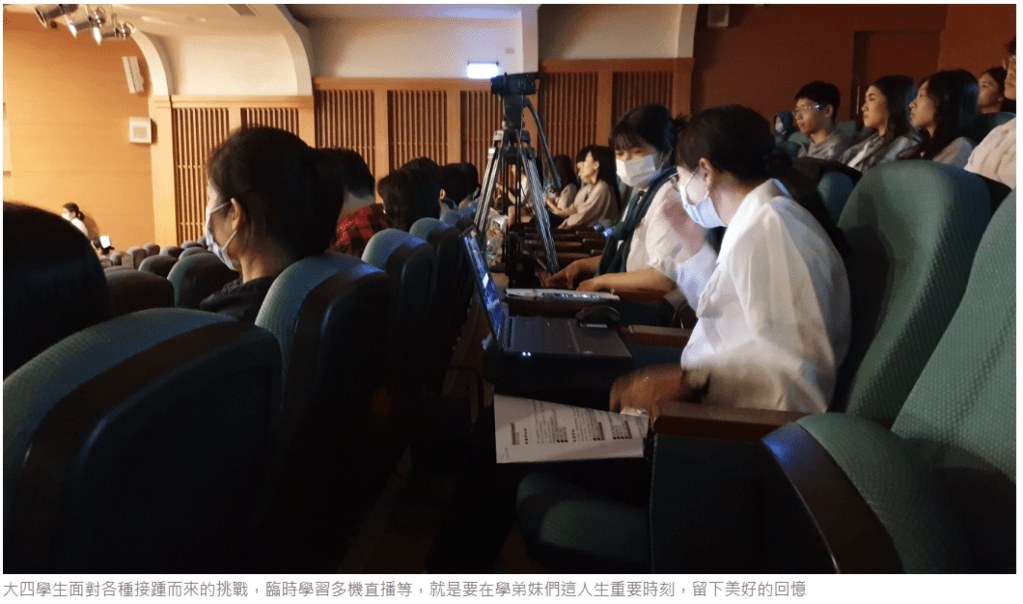莊嚴隆重的典禮,由大四學長姐為大二學弟妹設計籌辦的,準備過程中遇到0403地震、0423群震加上大雨特報,讓活動地點和流程不斷更動,最後為了顧慮到家長們往返交通不便,改為實體加線上直播。大四總召吳佳蓉同學表示,今年的主題為「調色盤」,每一個過程都是人生的色彩調色盤,藉由加冠隆重的儀式,希望讓他們暑假進入實習能夠開心堅定地走下去。