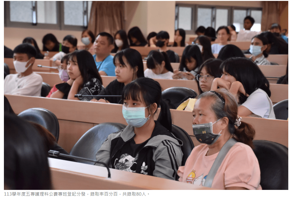 五月十一日,慈濟科技大學113學年度五專護理科公費專班登記分發,錄取率百分百,共錄取80人(分別是66女、14男)!歷史悠久的原住民專班錄取75人,衛福部玉里醫院花東專班錄取5人。