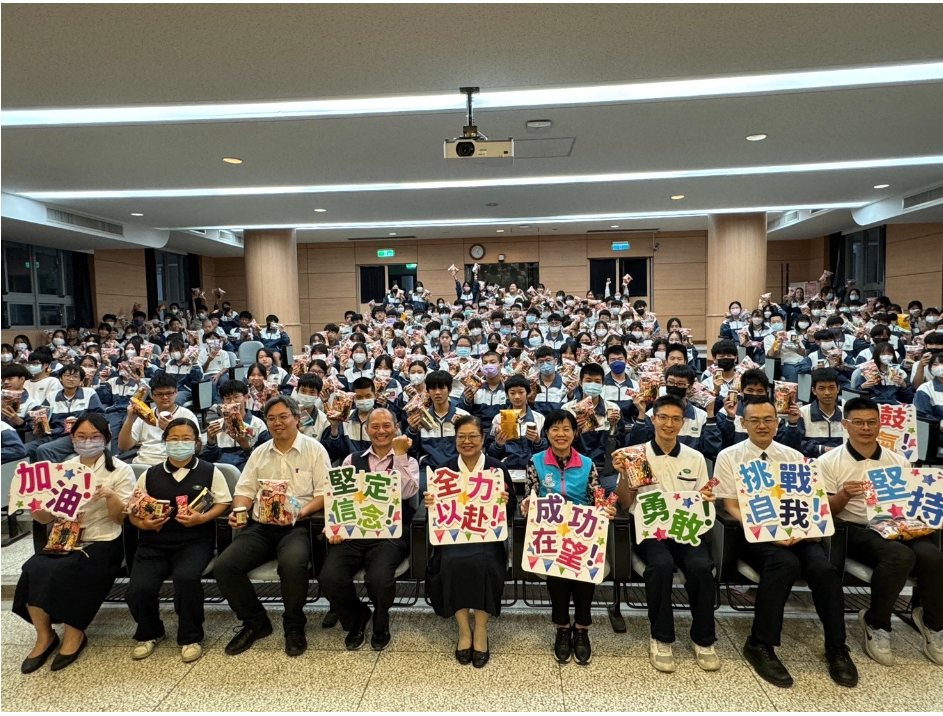 校長姊姊李玲惠希望每位考生在考場內,都能以「靜、定、慧」的心,堅持到最後一分鐘。家長會長劉鈞安也代表家長會送上文昌帝君「加持版」的乖乖,要學生們乖乖吃、乖乖睡、乖乖複習、安心考試。
