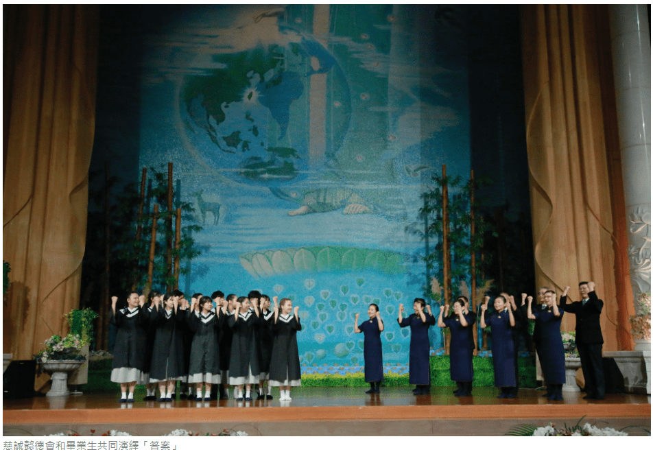 證嚴法師透過影片祝福所有畢業生, 上人開示,感恩是品德,情操的根源,教育是人生的希望,師長給予同學慧命,從學習中看見真理。靜思精舍德昕師父、德(木雨)師父、德淵師父、德淯師父也到現場祝福所有學子,德(木雨)師父勉勵:「日日行善,行孝不能等,要成為頂天立地,安定社會的力量。」