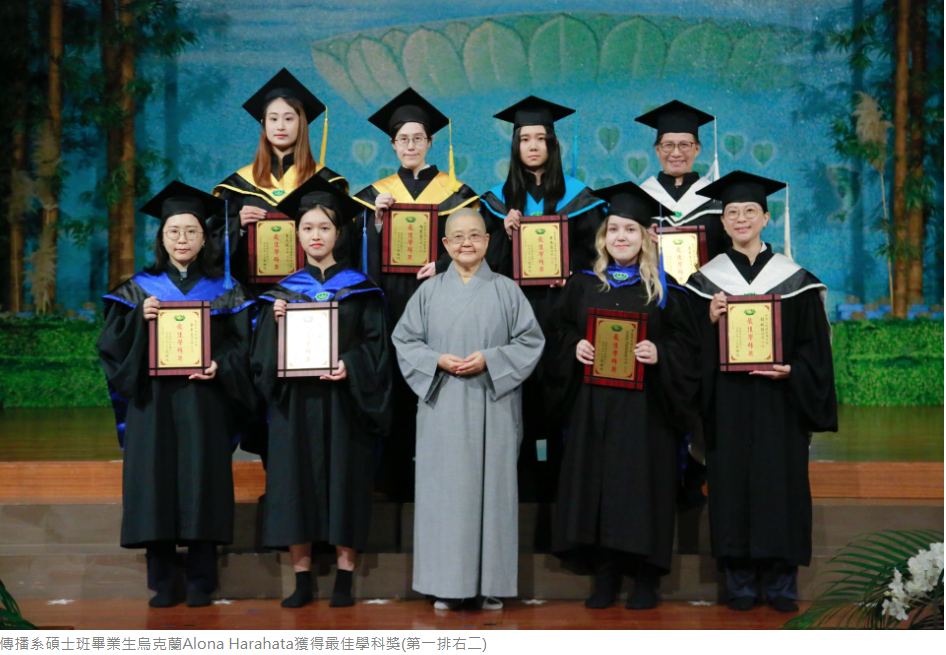 傳播系碩士班畢業生烏克蘭Alona Harahata獲得最佳學科獎,Alona Harahata說:「感謝台灣和慈濟大學在我們最艱難時給予協助,讓我們可以完成夢想,我期待未來將在烏克蘭所學的法律專業與在慈大學的傳播結合應用,從事政府與媒體關係的工作。」