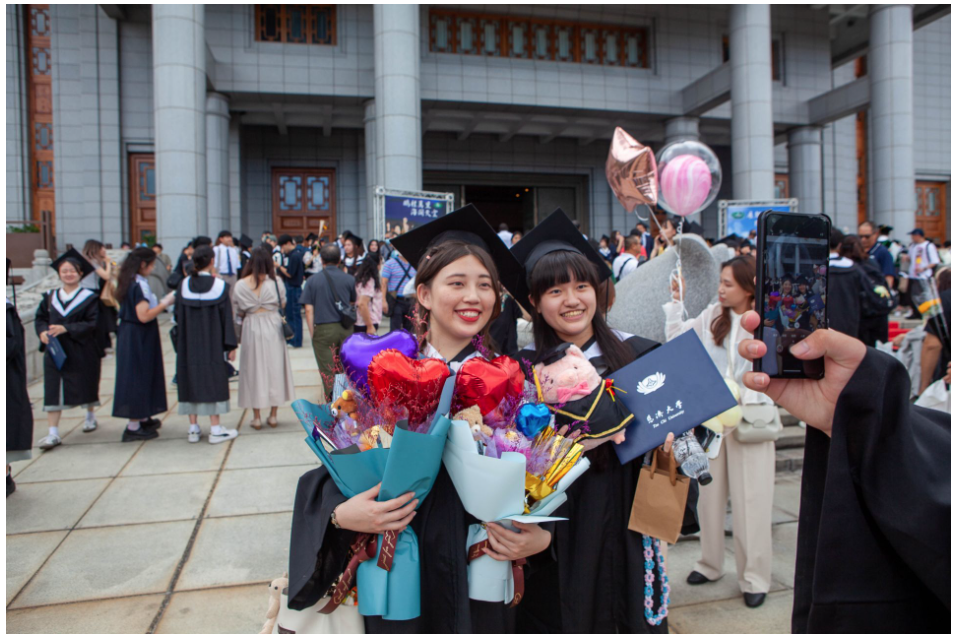 來自各地的學生家長們特別來參與孩子重要的時刻,印尼來的醫技系學生家長說:「謝謝慈濟大學照顧我的孩子,這個環境充滿了愛。」慈濟大學用愛與行動關懷支持學生,期許每一位畢業生都能找到人生方向。