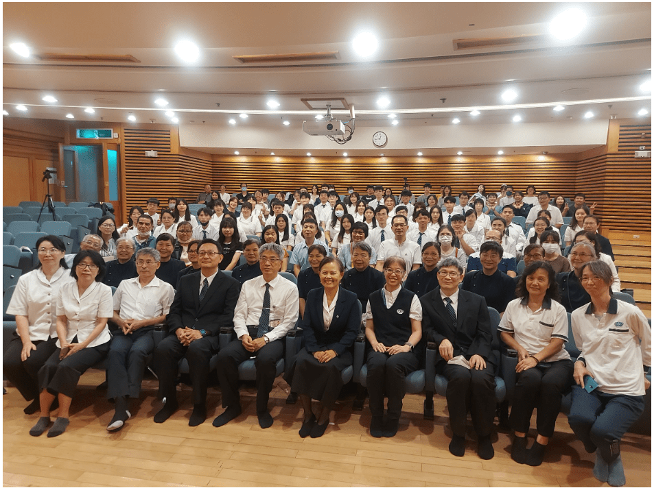 實習場所花蓮慈濟醫院檢驗醫學科張淳淳主任也出席祝福,首先恭喜同學們已取得進入職場,學習如何用所學的知識去幫助人的入門磚。但也提醒同學們,進入職場實習時要學習如何與人相處,也不忘叮嚀同學們在幫助別人之前也要先保護好自己,預祝大家可以順順利利完成實習,希望大家在實習過程可以體會當初選擇醫學檢驗生物技術學系的初發心,到底是不是跟你想的一樣,可以用專業去助人,當作一輩子的工作真的很好。