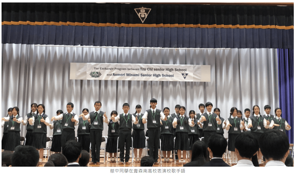 學生代表呂安絜同學也以流利的日語表達到訪日本的見聞及感受:「我們這幾天拜訪了青森,感受到這裡的人很親切,很感恩他們那麼親切地對待我們,很感謝他們帶給我們美好的記憶。」清晰的日語讓在座的縣廳官員頻頻點頭。為了表達敬意與感恩,慈中同學們另外還表演了慈中校歌手語。宮下知事對同學們手語的整齊動作印象深刻,聽到同學們的真摯分享也很歡喜。他表示,過去他曾多次拜訪臺灣的臺北、臺中和高雄,但不曾到過花蓮。因為同學們的表現,令他很想走訪花蓮,加強與花蓮的連結。看到慈中學生的表現,未來希望能夠促進更多兩地年輕人的交流。