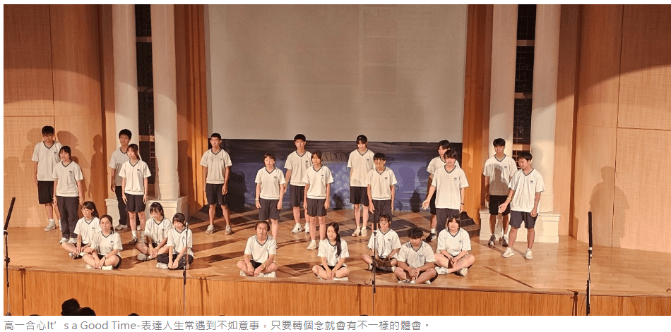 隨著高一班級一一進場,比賽正式開始。主持人以流利的英文介紹出場班級。第一個上場的是高一和氣班,演唱的曲目是Try Everything。正如歌名Try Everything,各位同學雖然不是歌手,但完美呈現出歌曲中要勇敢嘗試,就算失敗也是必經過程的精神。表演的最後,英文老師和導師一起上場,為歌曲展現了最佳的演繹。