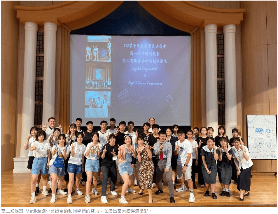 歌唱比賽結束後緊接著進行的是高二英語實驗班知足班的戲劇公演。演出的劇本是Roald Dahl的Matilda。為了這次的戲劇公演,高二知足籌備了許久,經歷了選角、道具、排練、發音的矯正及情緒的融入,同學所承受的壓力可想而知。