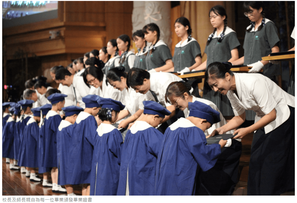 「向師公 上人、師長、家長行最敬禮!」畢業生恭敬地從師長手中接下畢業證書,並以深深一鞠躬表達誠摯感恩,讓在場所有家長與來賓都相當欣慰與感動。特別蒞臨會場給予祝福的更生日報謝立德社長即表示,慈中畢業典禮充滿了溫馨與愛,給予孩子們良好的教育,讓孩子們知道道理、懂得禮貌,並能實際展現,是非常難得的。