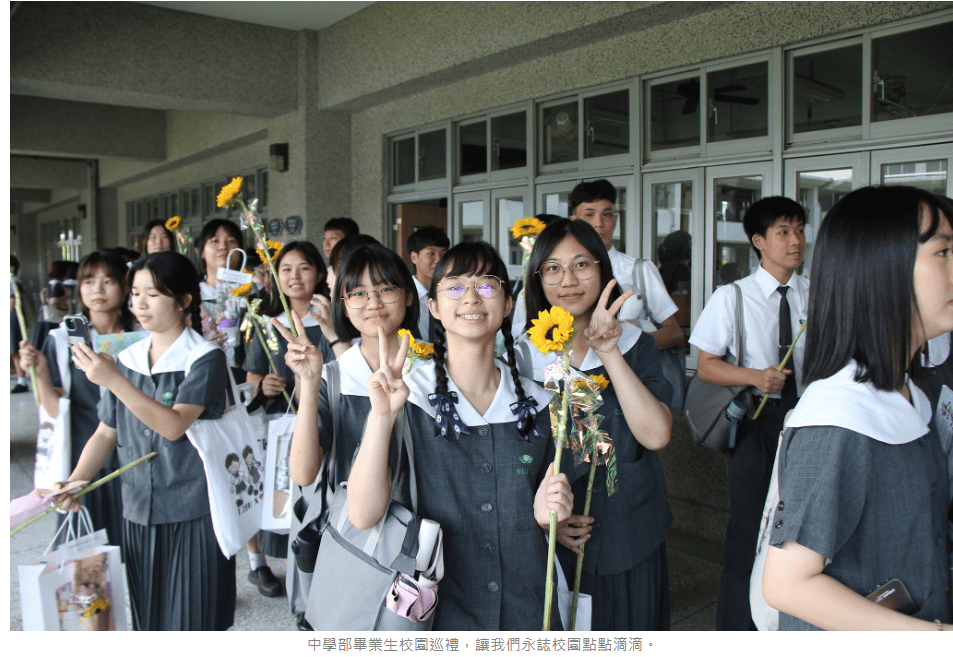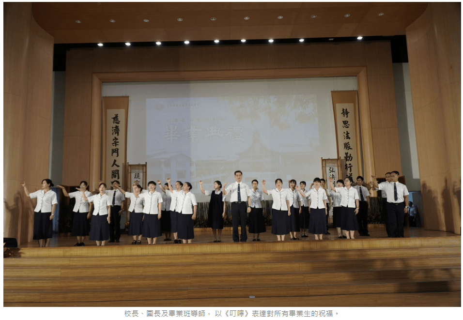 今日臺南慈中四部畢業生不管是三年、六年、或是九年,甚至十二年,這些分分秒秒堆疊而成的回憶,透過典禮中回顧影片,再次回味,更增添離情依依。