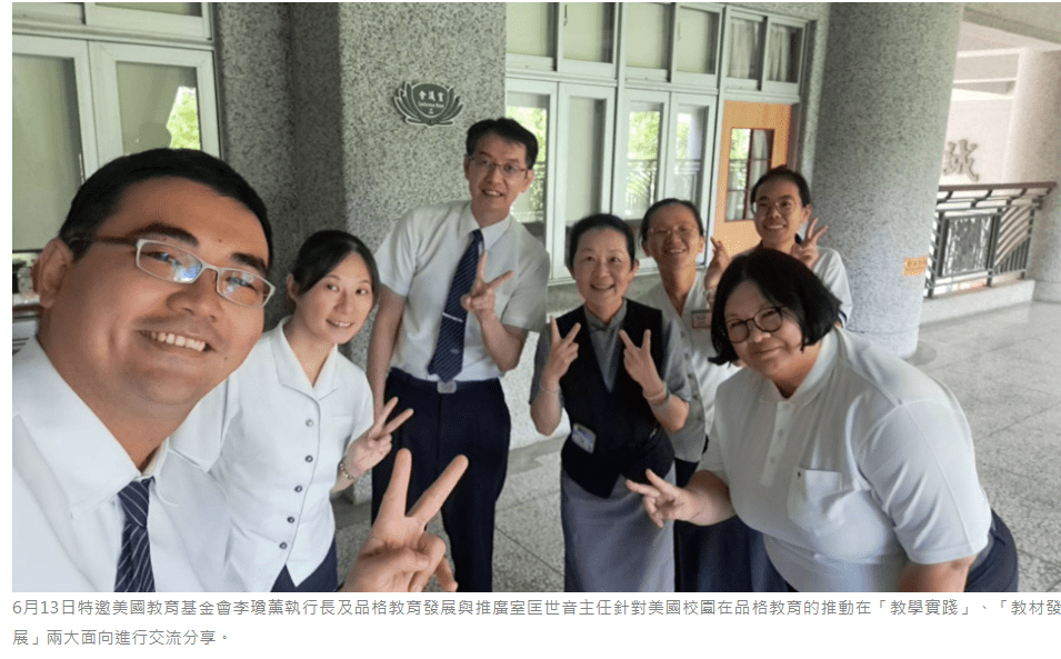 人文室林育吟老師此次座談回饋分享:要將東方道德思想轉換成西方可接受的教育思維並融入在美國學校教育之中,需要很強的教材發展能力。而此困境在臺灣現今面臨學生世代的差異下也漸為明顯可見。對於瓊薰執行長分享的一個觀點很有共鳴「歡迎任何質疑的聲音」因為學生有質疑的聲音提出,我們才有機會產生所謂的溝通與思辯。培養批判思考讓學生有能力做出好的判斷與選擇,並實際參與、實踐品格力。