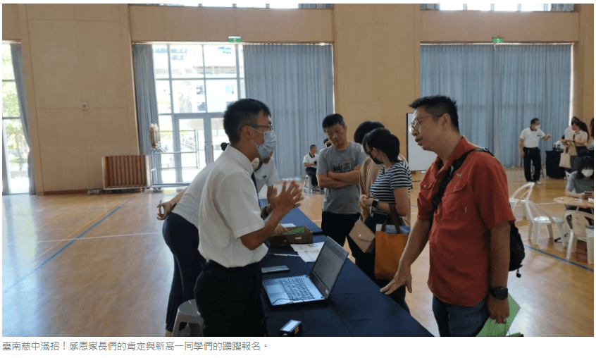 今日,臺南慈中除迎來百多人越南師生蒞校參訪外,一早學校活動中心也迎來臺南慈中高一新生報到人群,臺南慈中在113學年度新高一順利滿招!憑藉著亮麗辦學績效,113年臺南慈中無論在國中會考成績以及高中升大學榜單都繳出亮眼成績單。